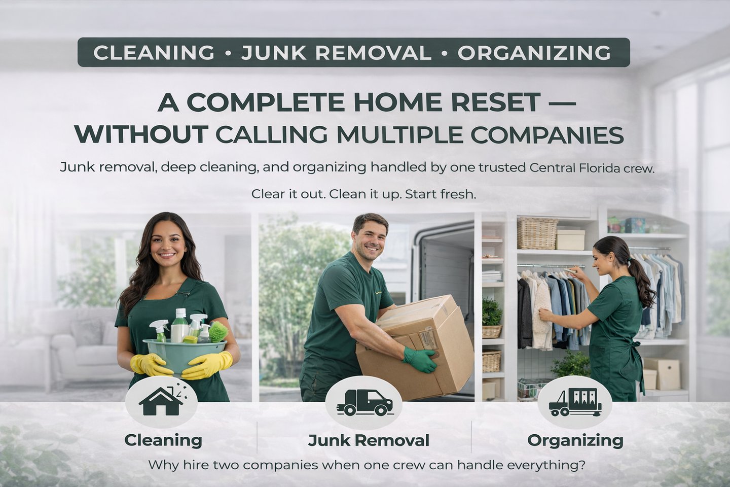 Efficient junk removal and cleanout services for garages, homes, and bulk items. Serving Orlando and the surrounding Central Florida area, we help clear clutter quickly and responsibly.